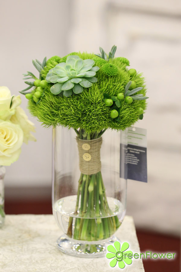 Kolor greenery został uznany przez Instytut Pantone kolorem 2017 r. W bukietach kolor ten idealnie podkreśla dekoracyjna zieleń, ale również niektóre kwiaty, choćby goździk green trick czy santini.