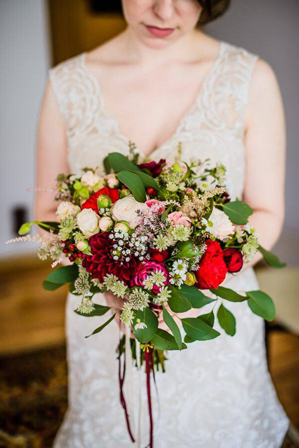 Niezmiernie cieszy nas fakt, że już od jakiegoś czasu we florystyce ślubnej dominują bukiety łąkowe, w formie luźnych i nieregularnych wiązanek z dodatkiem ziół, liści eukaliptusa, czasem paproci.