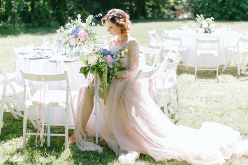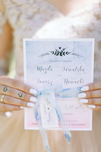 Panna Młoda swoją ślubną stylizację utrzymała w kolorystyce przewodniej. Dzięki połączeniu tych dwóch kolorów prezentowała się bardzo subtelnie i szalenie kobieco.