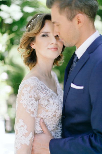 Makijaż oraz suknia są absolutnie piękne, a przede wszystkim dobrane do urody i charakteru Panny Młodej. Koronkowe wykończenia dodają dziewczęcego wdzięku. Całość prezentuje się wspaniale. Kolor sukni to Rose Quartz.