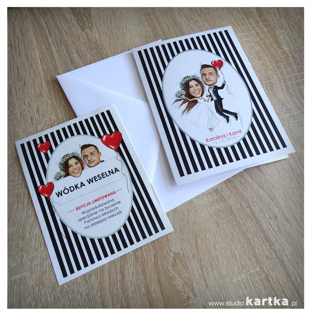 Zajmujemy się projektowaniem zaproszeń i dodatków ślubnych. Wykonujemy projekty indywidualne, proponujemy malowane ręcznie motywy takie jak: karykatura lub portret pary młodej, elementy kwiatowe i różnego rodzaju wzory malowane akwarelą - wedle uznania klienta. Nasze projekty wykonywane są odręcznie, dzięki czemu charakteryzują się dużą oryginalnością i są niepowtarzalne.