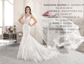 Nasze salony znajdują się w Gdyni, Starogardzie Gdańskim, Malborku, Kościerzynie oraz Tczewie. Od ponad 30 lat zajmujemy się przygotowaniem do tego wyjątkowego i niezapomnianego dnia jakim jest ślub. Salony Sukien Ślubnych "Alicja" oferują wypożycza...