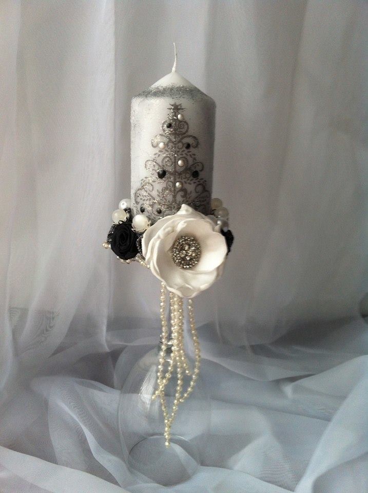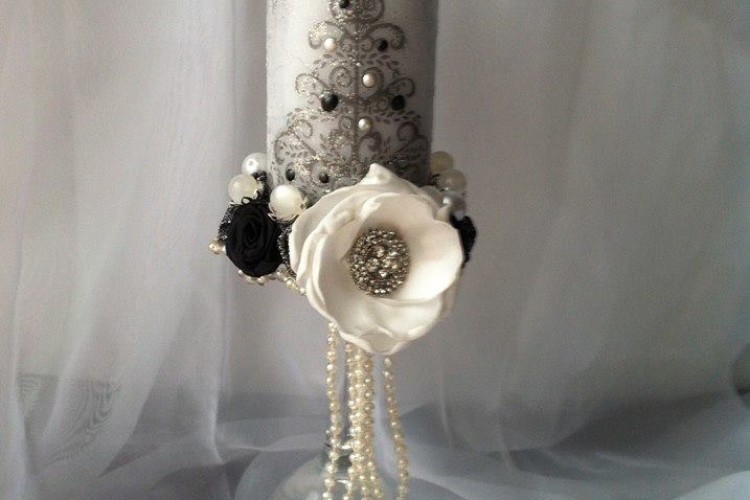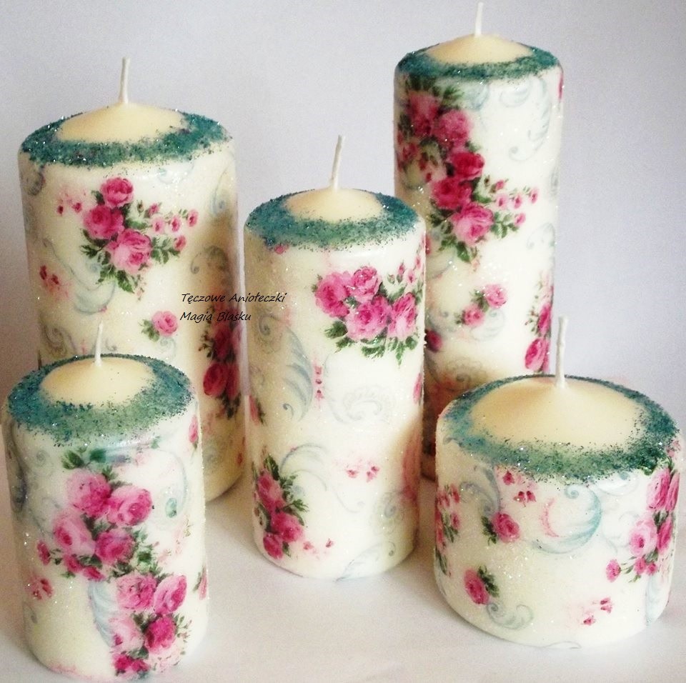 Zajmuję się ręcznym zdobieniem świec użytkowych na różne okazje, posiadam kilkadziesiąt wzorów, do dekoracji stołu Pary Młodej można użyć kompletu lub pojedynczych świec na świecznikach wg oferty. Świetnie sprawdzą się jako podziękowanie dla Gości z datą Państwa ślubu i inicjałami.