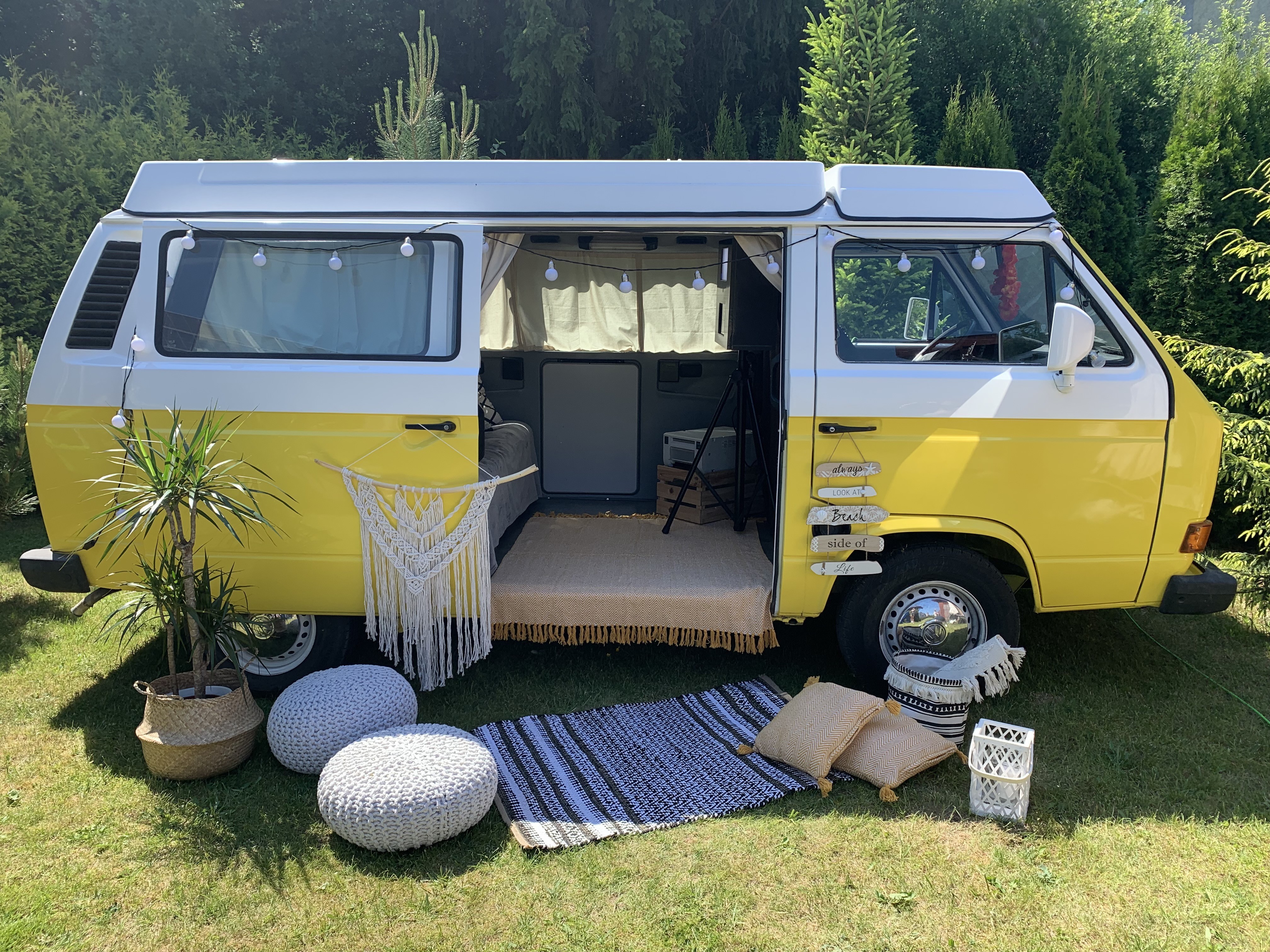The Sunny Photobus to mobilna fotobudka w klasycznym Volkswagenie T3, która będzie niepowtarzalną atrakcją na uroczystość, którą organizujesz! Fantastycznie sprawdzi się na wesela, wieczory panieńskie lub kawalerskie, urodziny, Baby Shower, garden party, festiwale, eventy plenerowe, eventy firmowe i integracyjne oraz sesje zdjęciowe.