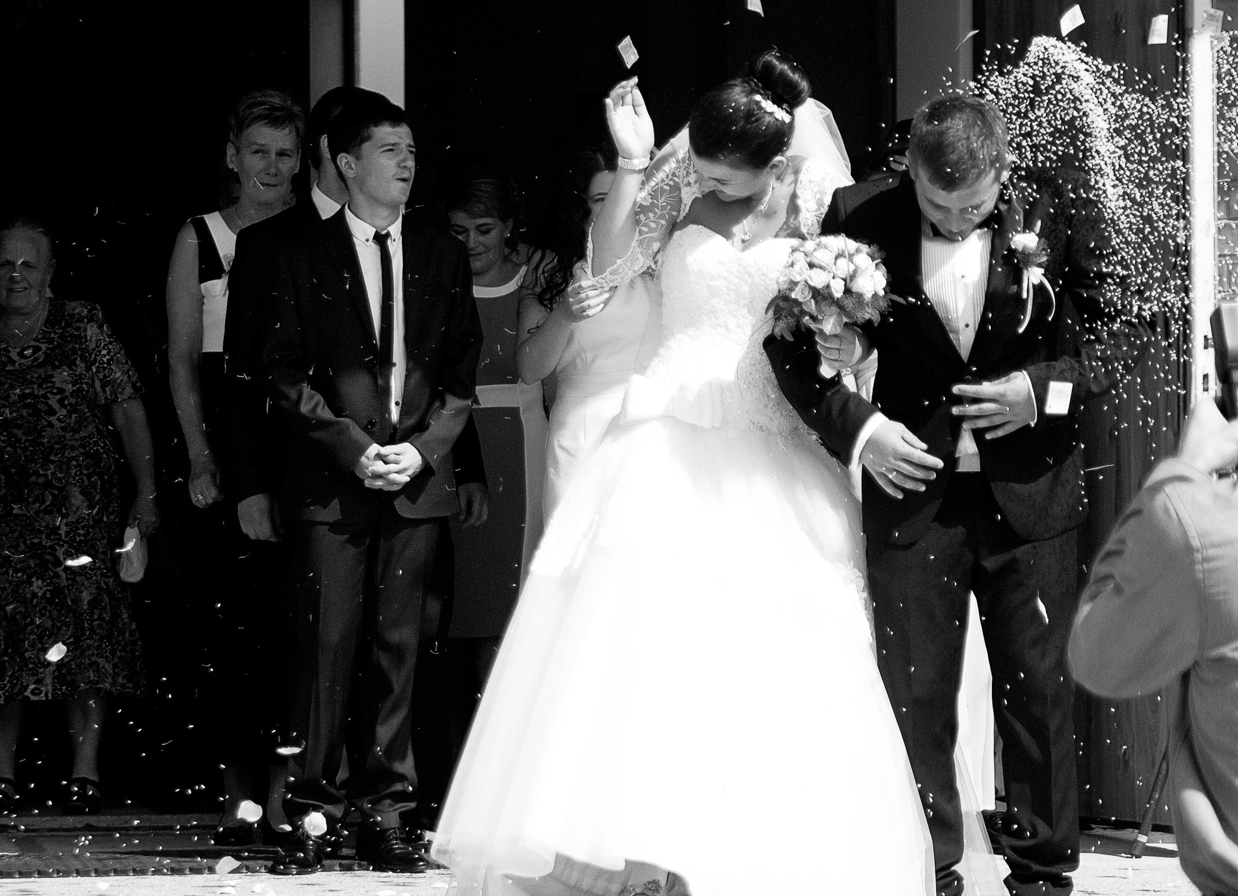 Co, dostaliśmy za swoje pieniądze?Wybraliśmy droższą opcję usługi, nie było potrzeby wpłaty zaliczki. Jakiś czas przed ślubem zaczęła działać nasza strona narzeczeńska, gdzie można było zamieścić np. listę gości, opisać siebie, listę rzeczy do załatwienia itp. Nasz ślub nie był duży, mimo to ceremonię w kościele obsługiwał zespół dwóch fotografów, ponieważ pan Tomasz wolał mieć pewność, że nic nie zawiedzie w tak ważnej chwili. Dało to też dodatkowy efekt, mianowicie: i my i nasi goście poczuliśmy się trochę jak celebryci. Na naszym weselu zażyczyliśmy sobie tzw. „ściankę”, jak wspomniałem impreza nie była duża, więc chcieliśmy mieć zdjęcie z każdym gościem. Po zapytaniu, okazało się, że bez problemu mieści się to w wybranej przez nas opcji usługi. I, pan Tomasz na każde nasze zawołanie, to znaczy za każdym razem, gdy udało nam się porwać któregoś gości z zabawy i ustawić przed ścianką, robił nam zdjęcie. Wyszło to świetnie, i dało gościom i nam dużo radości. Sesja plenerowa odbyła się niedługo po dniu ślubu, i odbyła się w miejscu, które sami sobie wybraliśmy, akurat tak się złożyło, że jest ono odległo o dobre 100 km, z czym nie było żadnego problemu. Sama zaś sesja odbyła się w dwóch lokacjach odległych od siebie o kilka kilometrów.Już po zakończeniu wszelkich sesji zdjęciowych usiedliśmy z panem Tomkiem, żeby już ostatecznie wybrać albumy, rodzaje okładek, czy chcemy płytkę i tego typu rzeczy. Tutaj wybór opcji jest ogromny, trudno się zdecydować, i naprawdę warto poświęcić na to osobne spotkanie. Po kilku tygodniach na naszej stronie z albumem ślubnym zaczęły pojawiać się zdjęcia. I, oczywiście można wybrać, które zdjęcia chcemy udostępnić gościom, można też zamówić ich wydruk w różnorakich formatach. Od Pana Tomka odebraliśmy tak jak sobie zażyczyliśmy: imponujących rozmiarów album z wklejanymi zdjęciami dla siebie, fotoksiążkę (mnóstwo zdjęć) dla rodziców, płytkę ze zdjęciami i jeszcze -znowu dla pewności- pendrive ze zdjęciami.Zdjęcia bardzo nam się podobają.No, i słowo o samym fotografie, warto o tym wspomnieć, bo spędza się w jego towarzystwie sporo czasu. Pan Tomek, jest sympatyczną, otwartą na pomysły osobą. Szybko reagował na nasze uwagi i potrzeby. Oczywiście, polecamy.