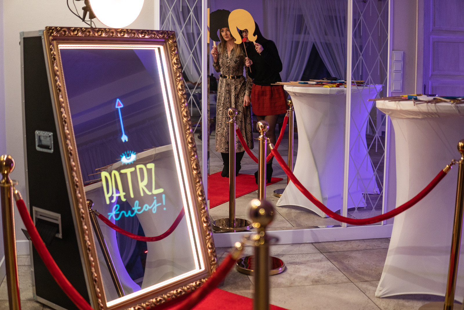 - wybór podświetlanej ramy lustra złota rzeźbiona lub srebrna gładka (dopasowanie do wystroju imprezy)