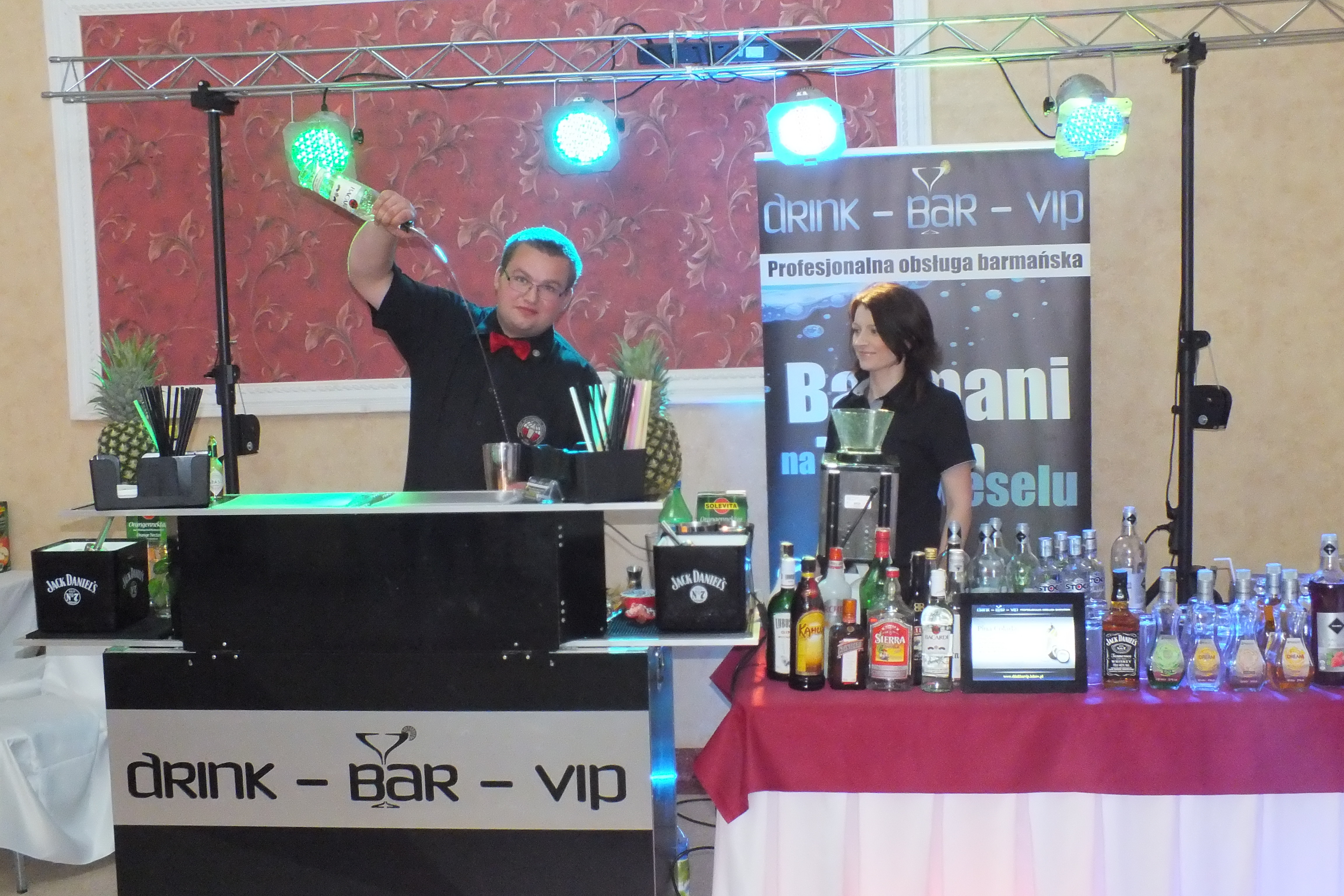 Z pewnością każda Para Młoda marzy o tym, by ich wesele było wyjątkowe.Proponujemy Państwu niezapomnianą imprezę z udziałem naszych barmanów - drinki w naszym wykonaniu to smak, wdzięk, klasa i profesjonalne przygotowanie.Oferujemy bogate menu stworzone specjalnie na Państwa imprezę - drinki dla Pań i Panów oraz dla odważnych (płonące), napoje mieszane dla dzieci.Imprezy z naszym udziałem zawsze wzbudzają wielkie zainteresowanie wśród gości.