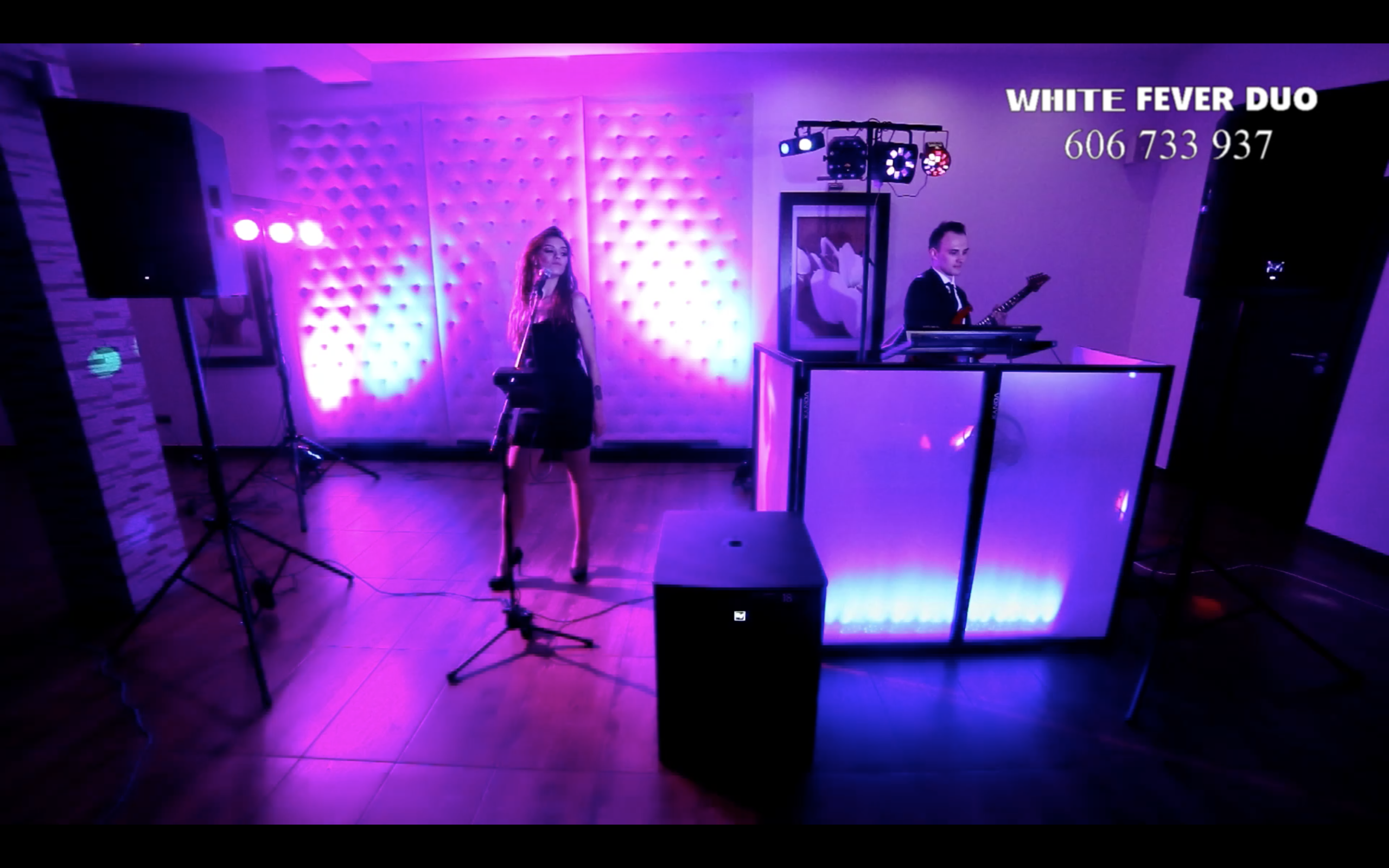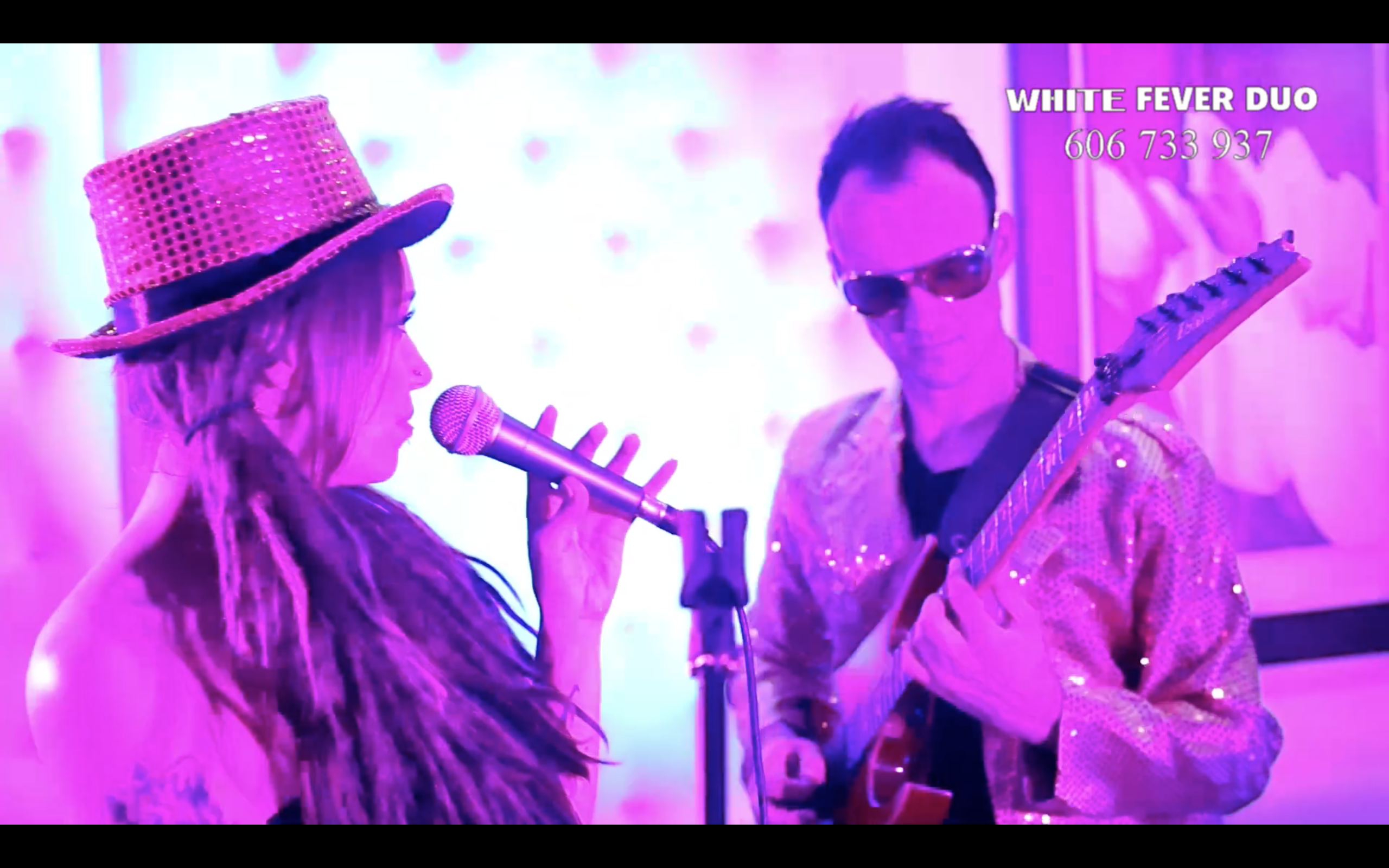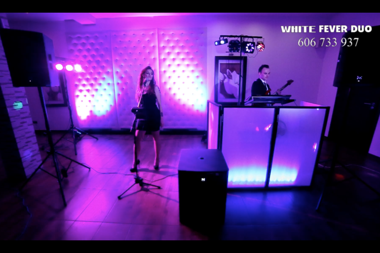 White Fever Duo to doskonały kompromis pomiędzy DJ-em, a zespołem. W jego skład wchodzą wokalistka oraz gitarzysta, którzy występują do podkładów muzycznych „półplaybacków” nagranych wcześniej przez zawodowych muzyków. Dzięki profesjonalnemu systemowi nagłośnieniowemu doskonale sprawdzimy się na każdej sali - zarówno dużej, jak i tej bardzo małej, gdzie warunki akustyczne, czy mała powierzchnia sceny sprawiają, że pełny zespół nie sprawdziłby się najlepiej. Różnorodny , na bieżąco uaktualniany repertuar - smooth jazz, rock, muzyka klubowa, latynoska, disco polo, biesiada - sprawi, że każdy z gości znajdzie coś dla siebie. Od najnowocześniejszych elektronicznych brzmień prosto z dyskotek – Rihanna, Daft Punk czy Lady Gaga poprzez czołową Polską oraz zagraniczną muzykę Pop, czy solidną dawkę rocka np. Queen. Metallica, The Doors, AC/DC do gorących latynoskich rytmów -prawdziwe szaleństwo do białego rana! Posiadamy również własne oświetlenie sceniczne, dyskotekowe oraz wytwornicę dymu, która dodatkowo zachęca gości do wyjścia na parkiet. Charyzmatyczna wokalistka poprowadzi również zabawy i Oczepiny. Na życzenie klienta oferujemy również bloki muzyczne tematyczne, z przebraniami i gadżetami dla gości. Oferujemy również rozbudowanie naszego składu o saksofon.