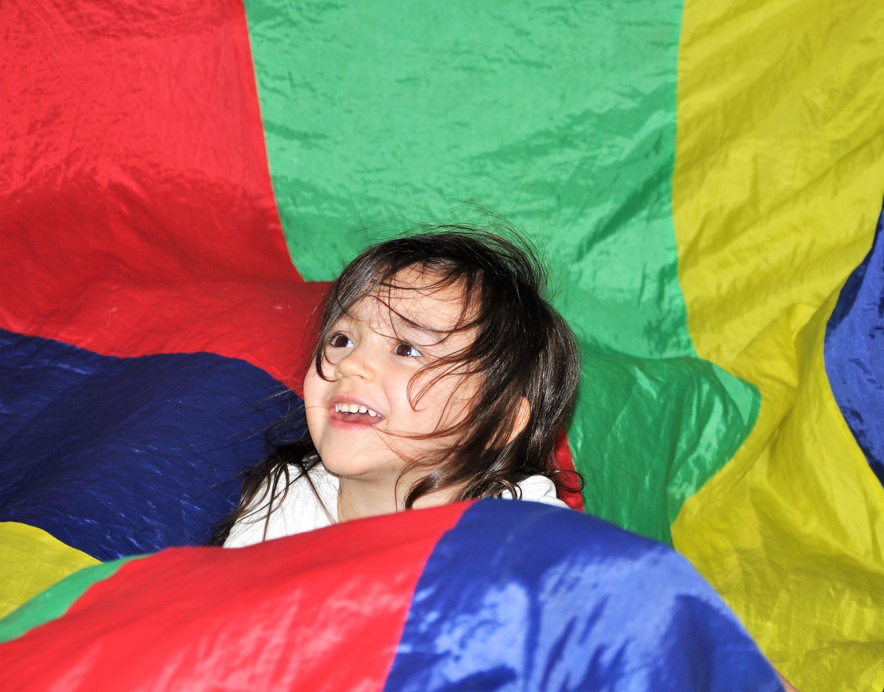 - zabawy z chustą i kolorowymi piłeczkami