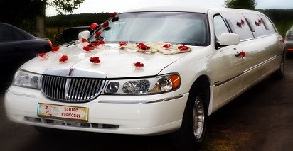 Pakiet ślubny: (wynajęcie limuzyny, przystrojenie samochodu z zewnątrz, tablice okolicznościowe, butelka szampana)