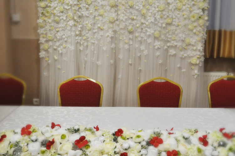 Oferta dotyczy wypożyczania dekoracji z sztucznych kwiatów. Pełna oferta zawiera wypożyczenie: 12 kul kwiatowych (średnica ok 40 cm), 12 szkieł martini (wys 70 cm), głównej kompozycji kwiatowej (dł. 120 cm) , konstrukcji dekoracyjnej (tło za młodą parą) o wym. 200 cm x 260 cm. W przypadku imprezy dwudniowej , drugi dzień GRATIS!!!