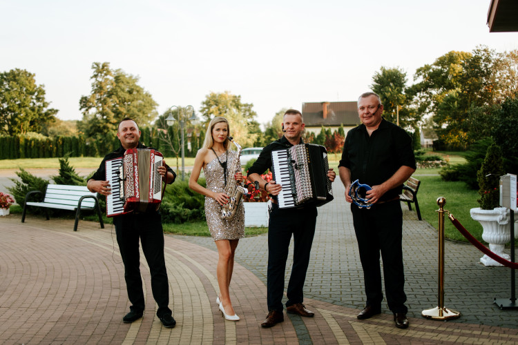 Ciężki dym i dekoracja swiatłem LED Jesteśmy zespołem muzycznym z okolic Kozienic i Pionek. Posiadamy wieloletnie doświadczenie w prowadzeniu różnorodnych imprez, a w szczególności wesel. Skład obecny naszego zespołu nie zmienia się od 18 lat i tworzą go 4 osoby (trzech wokalistów i instrumentalistów oraz wokalistka i saksofonistka). Wykonujemy niemalże każdy gatunek muzyczny, dlatego nasz repertuar może uświetniać bardzo różnorodne przyjęcia, w tym studniówki, bale, wesela oraz bankiety. Muzyka to nie tylko nasz zawód, ale również największa z życiowych pasji, dlatego z każdego występu czerpiemy ogromną przyjemność. Podchodzimy do każdego zlecenia bardzo poważnie, czyniąc wszystko by każde spotkanie z muzyką wykonywaną przez nasz zespół zapadło na długo w pamięci wszystkich obecnych. Występujemy na terenie całego kraju. Posiadamy własny, niezawodny transport co pozwala na dojazd w każde wskazane miejsce. Różnorodność i uniwersalność repertuaru ( najbardziej znane przeboje lat 60-90., do najnowszych hitów z list przebojów ) powoduje, że zespół sprawdza się na wszelkiego typu imprezach. Wachlarz naszych utworów jest bardzo urozmaicony i ciągle uaktualniany o hity z list przebojów Polski i Świata. Wykonujemy również utwory "Disco-Polo". Śpiewamy w języku angielskim, francuskim, włoskim, rosyjskim no i oczywiście polskim. Cały czas staramy się rozwijać. Inwestujemy w coraz lepszy i nowszy sprzęt, poszerzamy repertuar, wymyślamy nowe konkursy i zabawy. Dbamy o to aby na naszych imprezach nie było smutno. Prowadzimy je na wesoło, ale z zachowaniem dobrego smaku. Bawimy gości przede wszystkim na terenie województwa mazowieckiego, ale nie stanowi dla nas żadnego problemu dojechanie w dalsze zakątki naszego kraju. Oprócz muzyki, oferujemy także prowadzenie imprezy. Dysponujemy profesjonalnym nagłośnieniem, oświetleniem i własnym transportem