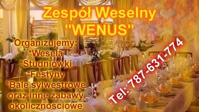 Zespół weselny WenusZespół weselny Wenus istnieje już od kilku lat. Mamy duże doświadczenie w obsłudze muzycznej imprez, takich jak wesela, studniówki, festyny, wieczorki taneczne, dancingi, itp. Jesteśmy muzykantami z duszą i polotem. Czasami gramy rzewnie, a czasem z przytupem, ale zawsze staramy sie sprawić, aby zabawa z naszym udziałem na długo zapadła w pamięć klientom.Jesteśmy profesjonalistami i muzyką zajmujemy się na co dzień. Gramy praktycznie wszystko: od rozwirowanego rock&rolla, przez spokojnego i refleksyjnego bluesa, aż po popularne szlagiery z ostatnich 40 lat. Nasza muzyka jest w stanie ożywić każdą imprezę - czy jest to studniówka, wesele, zabawa sylwestrowa, czy wykwintny bankiet – nie ma znaczenia!Muzyka wykonywana jest przez zespół całkowicie z werwą. W skład zespołu Wenus wchodzi dwóch muzyków i wokalistka. Gramy na keyboardzie, gitarze elektrycznej oraz akordeonie. Nasi muzycy to również doskonali wodzireje, którzy z powodzeniem mogą poprowadzić każdą imprezę muzyczną. Jesteśmy znani z bogatej oferty ciekawych gier i zabaw weselnych. Jeśli jeszcze masz jakieś wątpliwości, posłuchaj naszego Demo !Zespół weselny Wenus to dobry wybór. Gwarantujemy dobrą zabawę dla wszystkich!Gramy oraz inne repertuary zapraszamy na nasza stronę internetową tam można zobaczyć wiele zdjęć z imprez , festynów , wesel Proszę dzwonić a odpowiemy na każde pytanie.