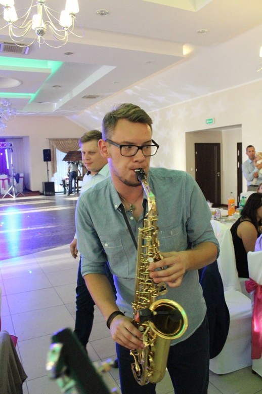 Na weselach proponujemy wspólną biesiadę akustyczną (z wykorzystaniem saksofonu, akordeonu, gitary akustycznej i instrumentów perkusyjnych).